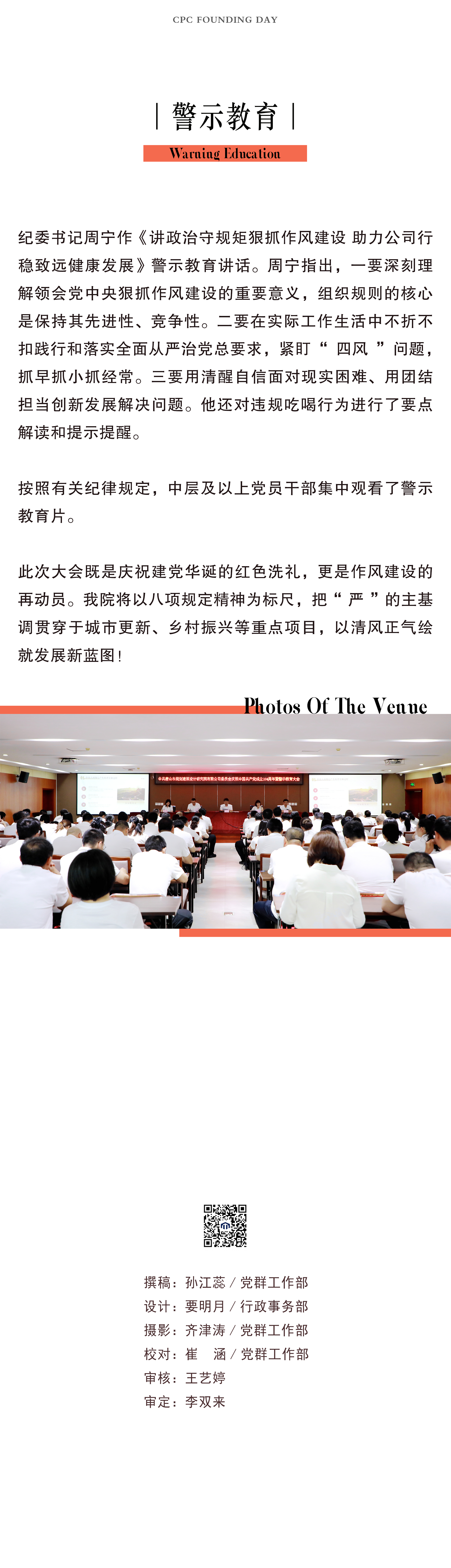 流光紀(jì)事 | 院黨委召開慶祝建黨104周年暨警示教育大會(huì)